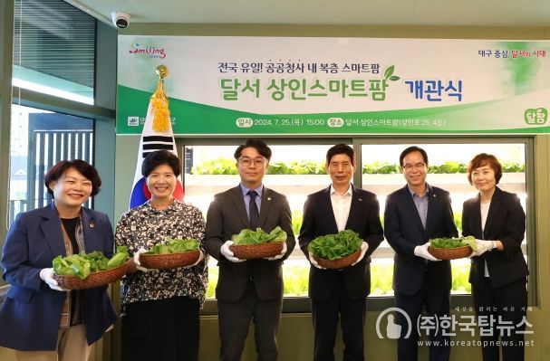㈜한국탑뉴스 한민석 기자 | 대구 달서구가 25일 공공청사 내 복층 스마트팜 전국 유일 사례이며, 대구지역 최대 규모의 도심형 스마트팜인 ‘달서 상인스마트팜’을 개관했다.