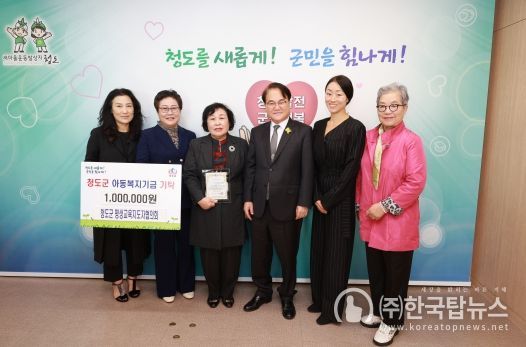 ㈜한국탑뉴스 송행임 기자 | 청도군마을평생교육지도자협의회는 28일 아동복지기금 100만원을 청도군에 전달했다.