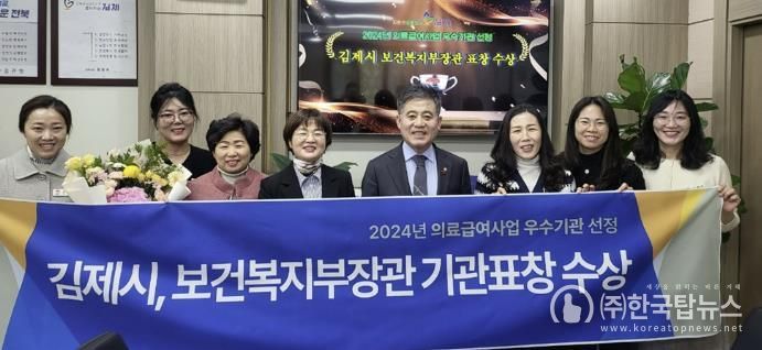 ㈜한국탑뉴스 한기석 기자 | 김제시는 17일 정부세종청사 대강당에서 열린 보건복지부 주관 ‘2024년 의료급여 사업 기관평가’ 시상식에서 우수 지자체로 선정돼 보건복지부장관 기관 표창을 받았다고 밝혔다.