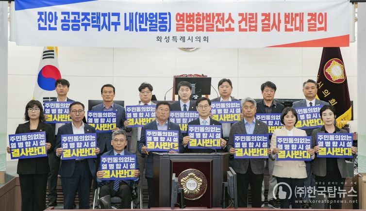 ㈜한국탑뉴스 한민석 기자 | 화성특례시의회 이해남·오문섭 의원 등 15인은 2025년 5월 8일, 진안 공동주택지구 내 열병합발전소 건립 계획과 관련해 지역사회에 미칠 영향에 대해 심각한 우려를 표명하며, 신중한 재고를 촉구하는 결의문을 채택했다.