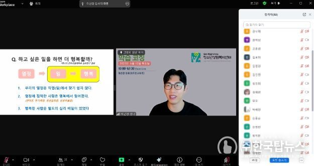 ㈜한국탑뉴스 차복원 기자 | 제주특별자치도청소년상담복지센터는 6월 12일 이선경 대표(위드인사이트)를 모시고 “긍정심리 기반 자기주도 학습 코칭”을 주제로 도내 학부모 대상 온라인 부모교육을 실시했다.