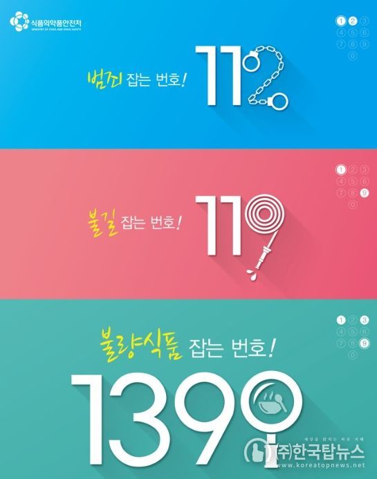 신고는 국번 없이 1399번으로 전화하거나 온라인 포털 ‘식품안전나라’ 또는 모바일앱 ‘내손안’을 통해 누구나 손쉽게 접수할 수 있다. 접수된 신고는 접수일로부터 15일 이내에 조사 결과가 신고인의 휴대전화 문자메시지로 자동 통보된다.