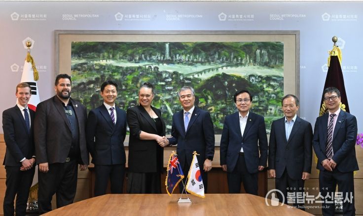 불탑뉴스 기자 | 김현기 의장은 27일, 상호결연도시인 웰링턴시의회 대표단을 접견하고 양 의회 간 교류협력 강화 방안을 논의했다.