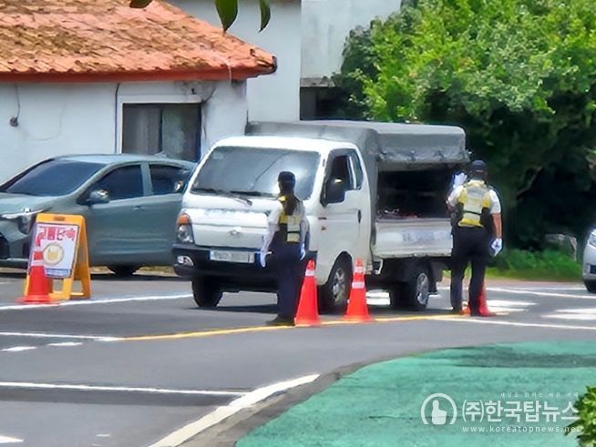 ㈜한국탑뉴스 차복원 기자 | 제주특별자치도 자치경찰단 서귀포지역경찰대 본격적인 여름 휴가철을 앞두고 25일 서귀포시 해수욕장 인근에서 특별 음주운전 단속을 실시해 면허정지 수준의 음주운전 2건을 적발했다고 밝혔다.