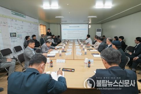 대책 회의에 참석한 공사관계자는 올여름 잦은 비와 폭염 등 기상 여건 악화 및 관급자재인 철근, 레미콘 수급 문제 등으로 3개월가량 공사가 지연됨에 따라 공사 준공을 2024년도 2월에서 5월로 연장하는 것이 불가피한 것으로 설명했다.
