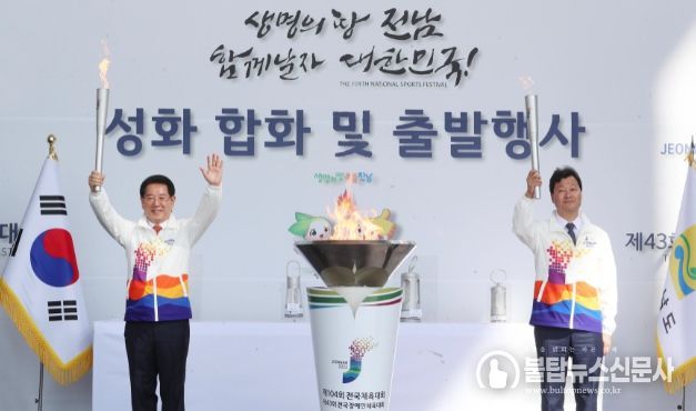 불탑뉴스 기자 | 전라남도는 10일 오전 도청 만남의 광장에서 제104회 전국체육대회와 제43회 전국장애인체육대회 성화 합화 및 출발행사를 개최했다.