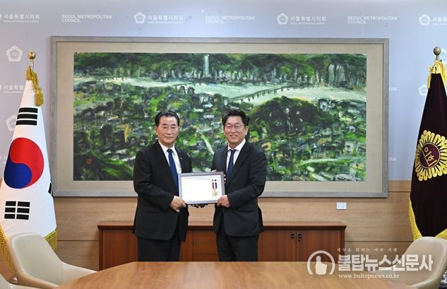 불탑뉴스 기자 | 우형찬 서울시의회 부의장은 10월10일 화요일, 서울시의회에서 장민우(캐나다 이름 Michael Chang) 캐나다 홍보대사를 만나 감사패를 대표로 전달하고, 앞으로 서울과 캐나다 브리티시컬럼비아 (British Columbia, Canada)와의 우호 협력을 높여 나가는데더욱 노력해 줄 것을 당부했다.