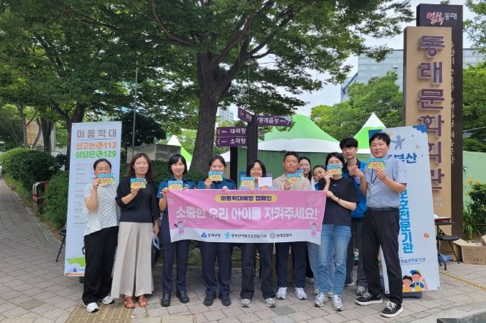 이번 캠페인은‘소중한 아이를 지켜주세요!' 라는 주제로 동래문화회관 원형공연장 일대에서 진행했으며, 부산동래경찰서와 중부산아동보호전문기관이 함께했다.