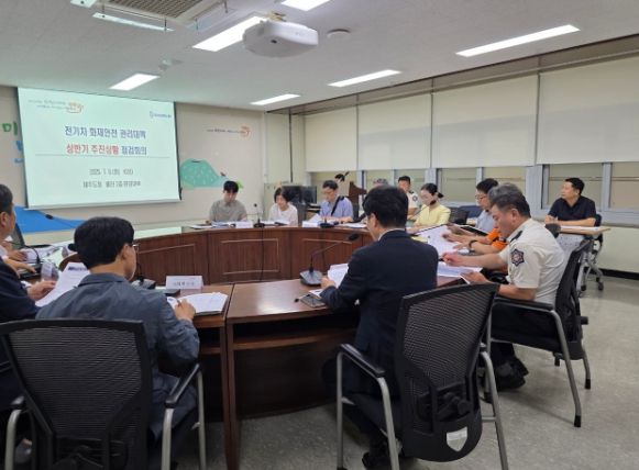 ㈜한국탑뉴스 차복원 기자 | 제주특별자치도가 전기차 화재 대응 능력 강화에 나섰다. 제주도는 8일 ‘전기차 화재 안전관리대책 상반기 추진상황 점검회의’를 열고 6개 분야별 성과를 점검했다.