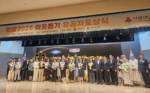㈜한국탑뉴스 송행임 기자 | 부산사회복지공동모금회(회장 이수태)는 지난 7월 8일 부산광역시청 1층 대강당에서 ‘희망2025 이웃돕기 유공자 포상식’을 개최하고, 나눔문화 확산에 기여한 유공자들에게 감사의 뜻을 전했다.
