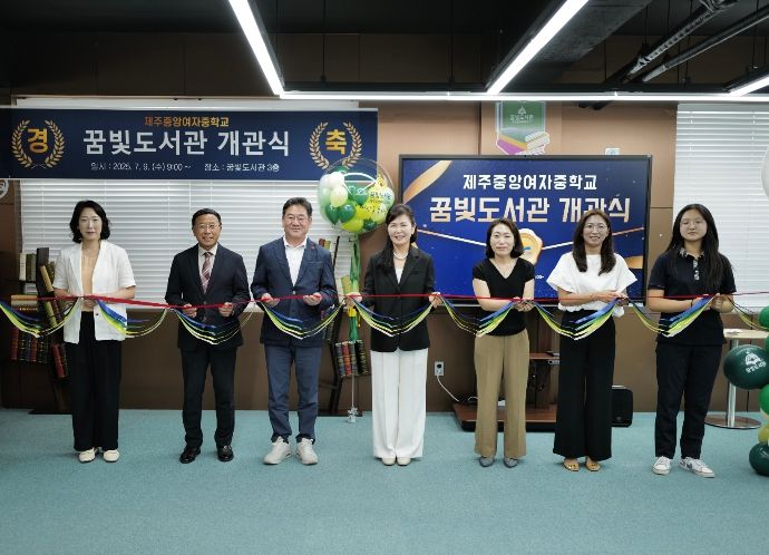 ㈜한국탑뉴스 차복원 기자 | 제주도교육청 제주중앙여자중학교에서는 9일 오전 9시 학생들의 배움의 터전이자 지역과 함께 호흡하는 열린 공간으로 새롭게 태어난 ‘꿈빛도서관’의 새로운 출발을 알리기 위해 학생, 보호자와 지역 관계자 등이 참석한 가운데 개관식을 개최했다.