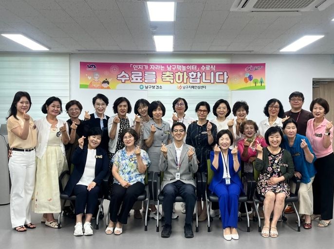 ㈜한국탑뉴스 송행임 기자 | 부산 남구는 지난 7월 9일, 보건소 보건교육장에서 '인지가 자라는 남구책놀이터(책놀이지도자 과정)' 수료식을 개최했다.