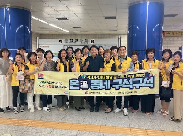 ㈜한국탑뉴스 송행임 기자 | 부산 북구 덕천1동 행정복지센터는 지난 9일, 여름철 폭염에 취약한 소외된 이웃을 발굴하고 고독사를 예방하기 위해 숙등역 지하철 역사 내에서 명예사회복지공무원과 함께 복지사각지대 발굴 캠페인을 실시했다고 밝혔다.