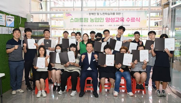 ㈜한국탑뉴스 송행임 기자 | 연제구는 7월 9일 장애인 및 느린학습자의 취업 역량 강화를 위해 운영한 '스마트팜 농업인 양성과정'을 성공적으로 마무리했다.