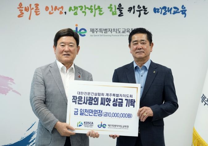 ㈜한국탑뉴스 차복원 기자 | 대한전문건설협회 제주특별자치도회는 14일 ‘작은 사랑의 씨앗’ 성금으로 제주특별자치도교육청에 1000만원을 기탁했다.
