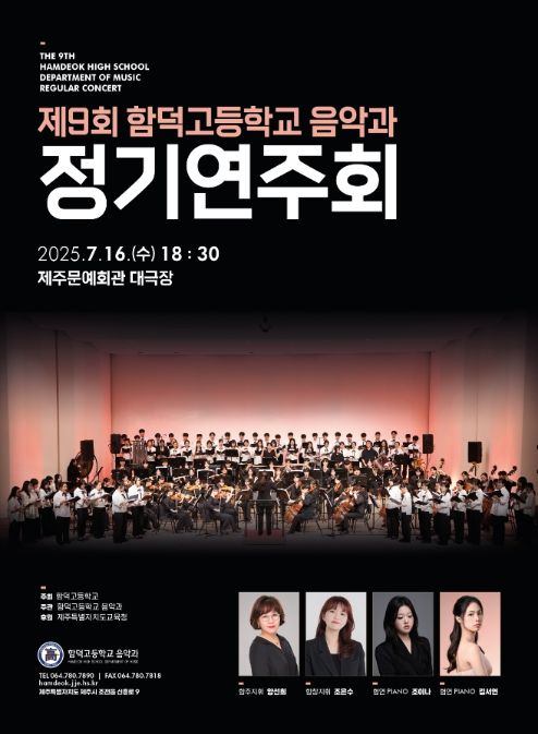 ㈜한국탑뉴스 차복원 기자 | 제주도교육청 함덕고등학교는 오는 16일 오후 6시 30분 제주도문예회관 대극장에서 ‘제9회 음악과 정기연주회’를 개최한다.