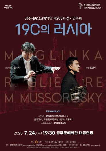 정나라 지휘자의 지휘 아래, 호른 연주자 김홍박과 공주시충남교향악단이 함께하는 이번 무대는 19세기 러시아 음악의 진수를 담아내어 강렬한 음색과 생생한 이야기로 살아 숨 쉬는 클래식 세계로 관객을 초대한다.