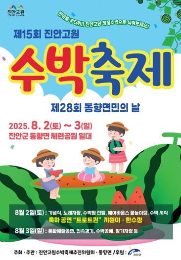㈜한국탑뉴스 한민석 기자 | 진안군은 오는 8월 2일부터 3일까지 동향면 체련공원 일원에서 시원한 여름과 함께하는 진안고원 수박축제를 개최한다.