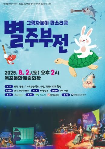 ㈜한국탑뉴스 한민석 기자 | 목포시 문화예술회관은 오는 8월 2일 오후 2시, 기획공연 '그림자놀이 판소리극 ‘별주부전’'을 선보인다.