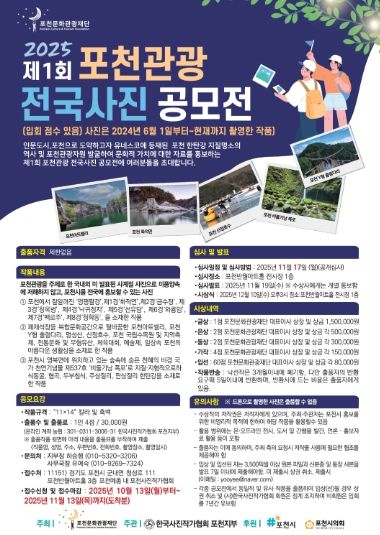 ㈜한국탑뉴스 한민석 기자 | 포천문화관광재단은 ‘2025 제1회 포천관광 전국사진 공모전’을 개최한다.
