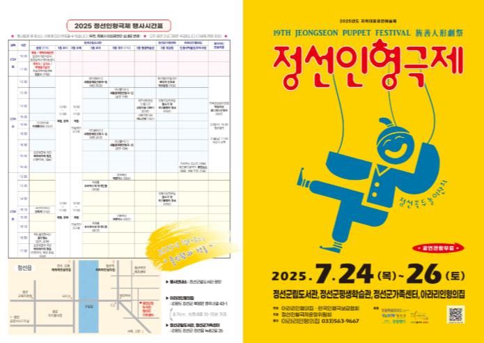 ㈜한국탑뉴스 한민석 기자 | 2007년부터 개최되어 어린이 중심의 가족 축제로 자리매김한 제19회 정선인형극제가 오는 7월 24일(정선군립도서관, 17시) 개막식을 시작으로 3일간 정선군평생학습관, 정선군가족센터, 아라리인형의집에서 다채롭게 펼쳐진다.