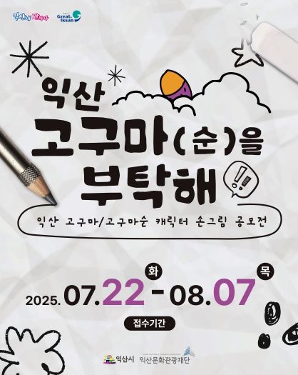 시 관계자는 "고구마와 고구마순은 익산을 대표하는 농산물로, 이번 공모전으로 청소년의 상상력이 담긴 캐릭터가 축제의 얼굴로 탄생하길 기대한다"며 "고구마처럼 달콤하고 정겨운 축제를 통해 방문객들이 함께 어우러질 수 있도록 준비하겠다"고 말했다.