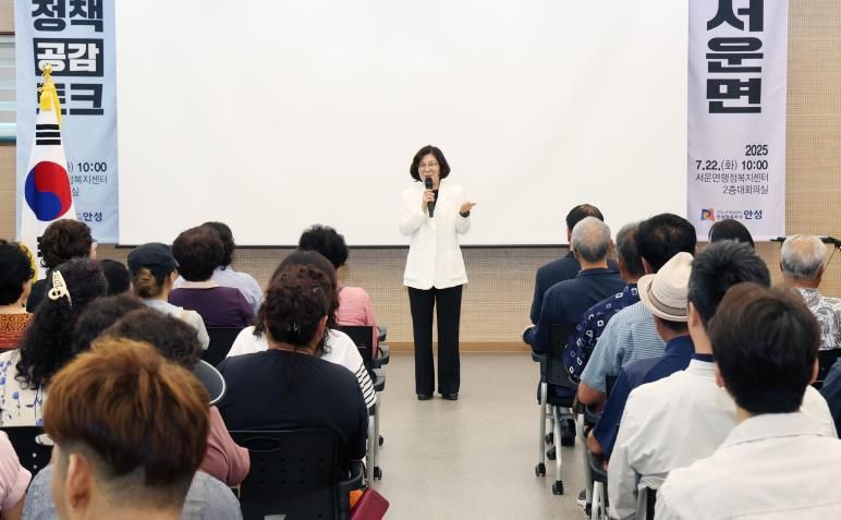 ㈜한국탑뉴스 한민석 기자 | 지난 22일 서운면은 서운면행정복지센터 2층 대회의실에서 주민들과 김보라 안성시장이 함께하는 “2025년 하반기 서운면 정책공감토크”행사를 성공적으로 마무리했다.