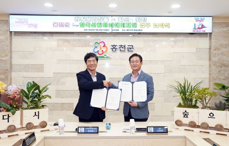 홍천군은 7월 23일 한국산림아카데미재단과 업무협약(MOU)을 체결하고 회색빛 원도심을 푸른 녹색 공간으로 탈바꿈시킬 도심 정원사 육성에 박차를 가하겠다고 밝혔다.