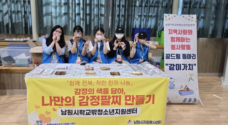 ㈜한국탑뉴스 한기석 기자 | 남원시학교밖청소년지원센터(센터장 정일신)는 지난 7월 24일, 중증장애인 시설인 스마일빌에서 ‘감정팔찌 만들기’ 체험 부스를 운영하며 뜻깊은 봉사활동을 펼쳤다.