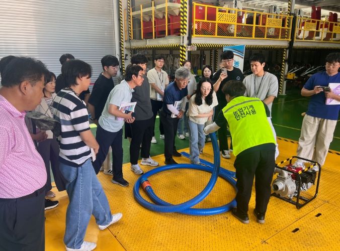 이번 교육은 읍면동 및 관련 부서 담당자 24명을 대상으로 가뭄 또는 집중호우 등 각종 재해‧재난 상황을 대비하여, 선제적으로 전진 배치된 엔진형 양수 장비 현장 대응 능력을 향상하고자 양수 장비 이론과 현장 사용 실습을 중심으로 추진했다.