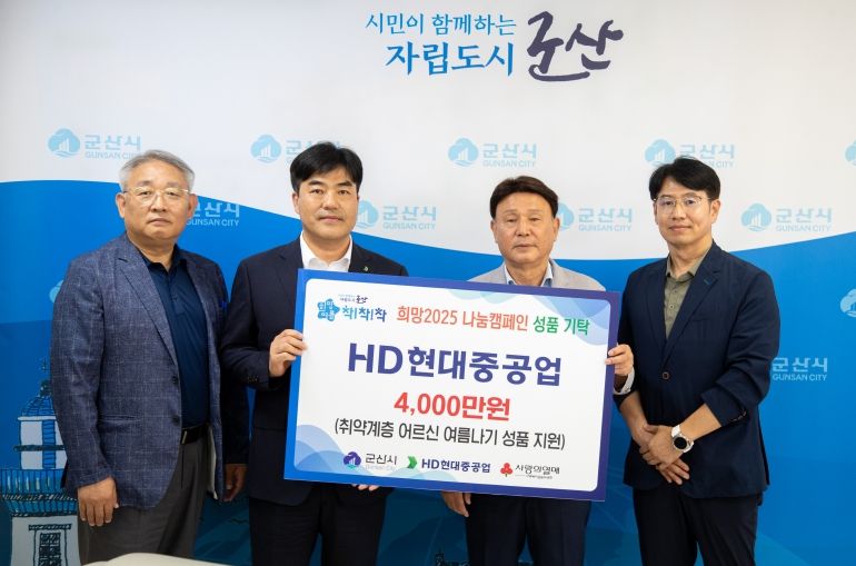 ㈜한국탑뉴스 한기석 기자 | HD현대중공업(대표이사 이상균·노진율)이 25일, 혹서기 취약계층의 건강한 여름나기를 지원하고자 4,000만 원 상당의 여름나기 선풍기와 보양식 꾸러미를 군산시에 전달했다.