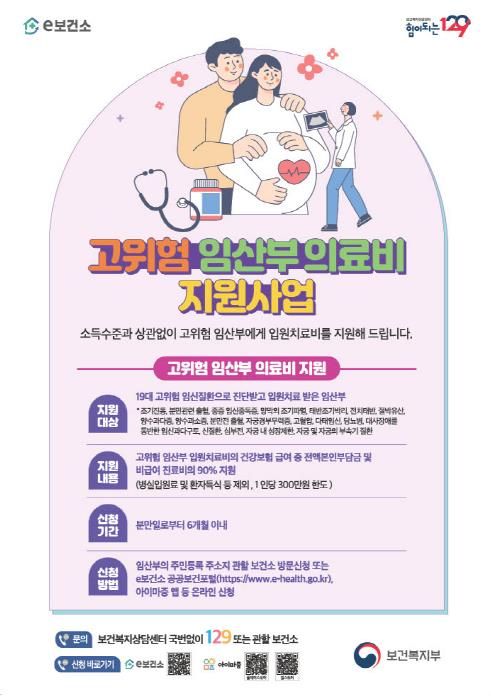 이선주 의료지원과장은 “고위험 임산부 의료비 지원이 임산부들의 경제적 부담 경감과 모자 건강에 도움이 되길 바란다”라고 말했다.