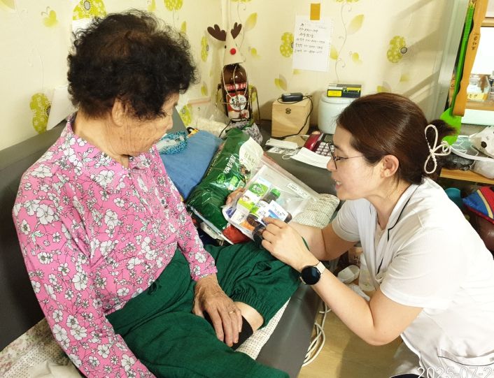이번 서비스에서는 약력과 병력 확인, 약 보관 상태 점검, 여름철 가정상비약 제공 등 기본 건강 점검이 이뤄졌으며, 노인 우울 척도(K-GDS) 설문을 병행하여 정신건강복지센터와의 연계도 모색됐다.