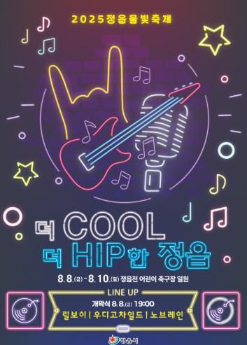 ㈜한국탑뉴스 한기석 기자 | 힙합과 EDM, 그리고 시원한 물놀이가 어우러지는 한여름의 젊음 축제 ‘2025 정읍물빛축제’가 내달 8일부터 10일까지 정읍천 어린이 축구장 일원에서 펼쳐진다.