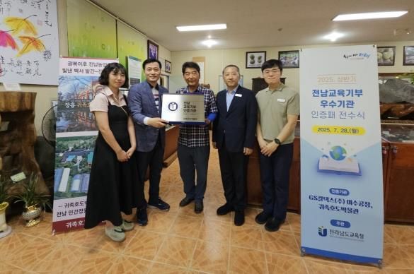 ㈜한국탑뉴스 한기석 기자 | 전라남도교육청은 2025년 상반기 교육기부 인증기관으로 GS칼텍스㈜ 여수공장, 귀족호도박물관을 재지정하고, 28일 인증패 전수식을 가졌다.