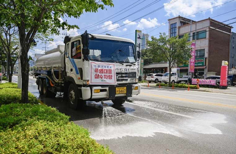 시는 우선 9월까지 폭염특보 발효 시 시가지 주요 간선도로에 살수차 4대를 투입하기로 했다. 강수 예보 등 기상 상황을 고려해 오전 10시부터 오후 5시까지 하루 2∼3회 운영할 계획이다.