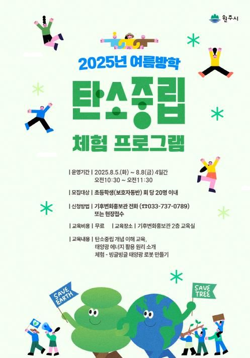 박상현 원주시 기후대응과장은 “어린이들이 생활 속에서 탄소중립을 실천할 수 있도록 체험 중심의 환경교육을 더욱 확대해 나가겠다”라고 말했다.