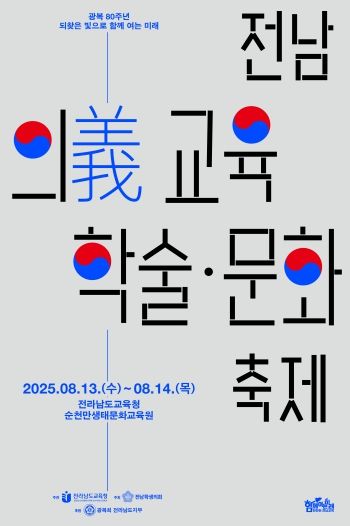 ㈜한국탑뉴스 한기석 기자 | 광복 80주년을 맞아, 전남 학생들이 기획하고 실천하는 ‘의(義) 교육’ 축제가 열린다. 오는 8월 13~14일 순천만생태문화교육원에서 열리는 ‘전남 의(義) 교육 학술·문화 축제’는 제7기 전남학생의회가 주도하고 전남교육공동체가 함께하는 배움과 실천의 자리다.