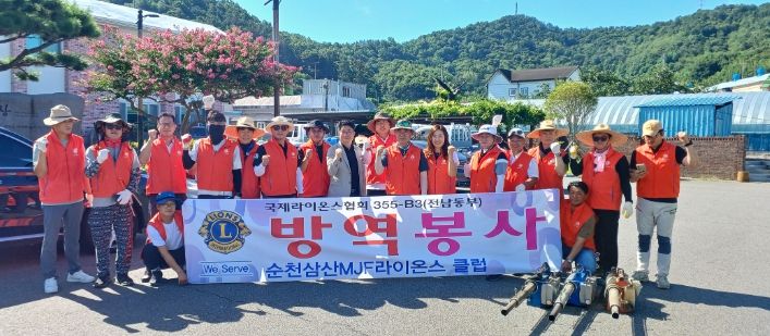 ㈜한국탑뉴스 한기석 기자 | 국제라이온스협회 355-B3지구 순천삼산MJF라이온스클럽(회장 박창환)이 지난 30일 순천시 해룡면 월전리에서 환경정화 활동과 방역을 실시했다고 밝혔다.