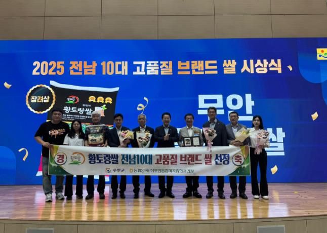 이번 시상식에서 무안 ‘황토랑쌀’은 상패와 함께 인센티브 1,000만원을 지급받았으며, 수상자와 참석자들은 ‘10대 쌀 채우기’ 퍼포먼스를 함께하며 도내 우수 쌀 브랜드의 성과를 공유하고 축하하는 자리를 가졌다.