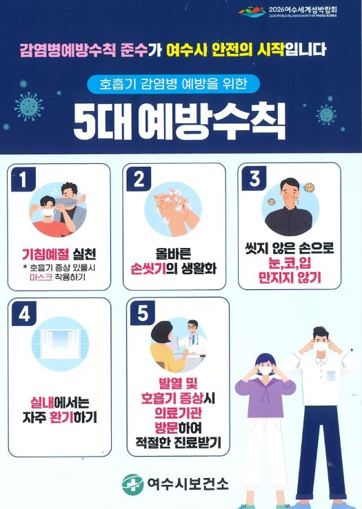 서현숙 여수시보건소장은 “요양병원, 노인복지시설, 장애인복지시설 등을 대상으로 예방수칙을 집중 홍보하고, 집단 감염 발생 시 신속한 역학조사로 고위험군 보호에 최선을 다하겠다”며 “시민들께서는 기침, 발열 등 의심 증상이 있을 경우 가까운 의료기관을 방문해 적절한 진료를 받고 증상이 회복될 때까지 충분한 휴식을 취하시길 바란다”고 말했다.