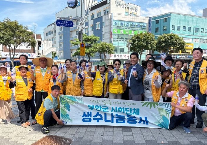 부안읍 주요 시가지에 모여 무더위 속 생수 나눔 봉사를 진행했다.