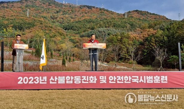 불탑뉴스 기자 | 충청북도는 27일 음성군 가섭산(음성읍 용산리) 일원에서 대형 산불 발생을 가정한'산불합동진화 시범훈련'을 안전한국훈련과 병행하여 실시했다.