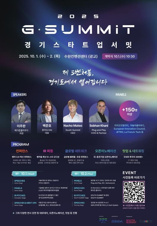 ㈜한국탑뉴스 한민석 기자 | 국내 최고 수준의 글로벌 스타트업 투자 박람회인 ‘경기 스타트업 서밋(G-SUMMIT)’이 오는 10월 1일부터 2일까지 수원컨벤션센터에서 열린다.