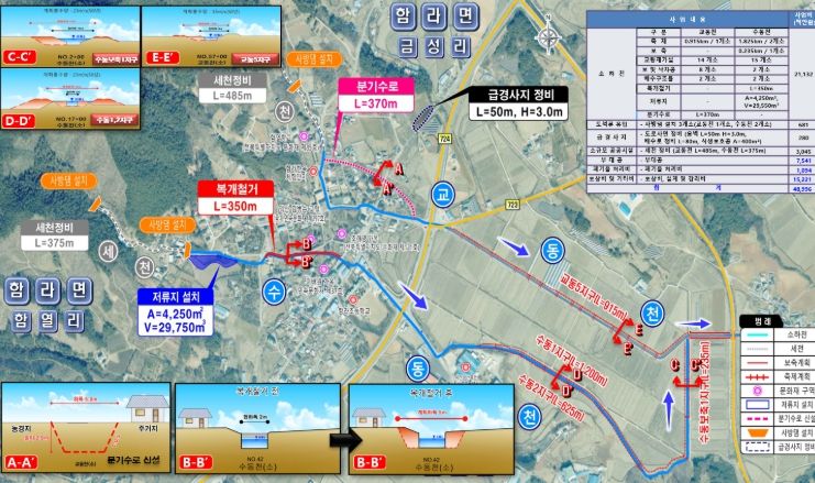 함라지구는 집중호우 시 침수 피해가 발생하고, 산지토사 유출과 노후 제방 등으로 재해 위험이 상존하는 지역이다.