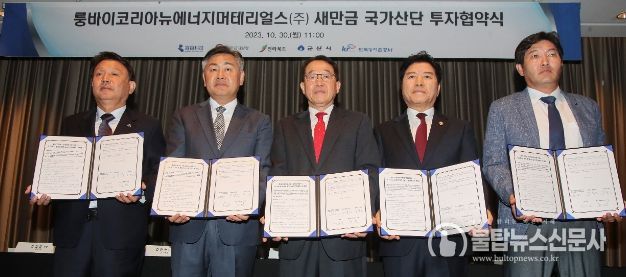 불탑뉴스 기자 | 새만금개발청과 전라북도․군산시․한국농어촌공사는 10월 30일 이차전지 글로벌 기업 룽바이사(社)가 단독 투자 설립한 룽바이코리아뉴에너지머테리얼스㈜(이하 ‘룽바이코리아’)와 ‘전구체 및 황산염 생산공장’ 건립을 위한 투자협약(MOU)을 체결했다고 밝혔다.