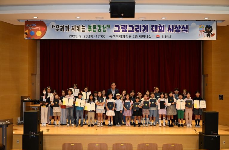 ㈜한국탑뉴스 송행임 기자 | 김천시는 9월 23일 녹색미래과학관에서 “우리가 지키는 푸른 김천” 그림그리기 대회 시상식을 개최했다.