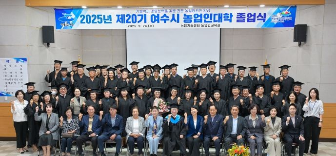 ㈜한국탑뉴스 차복원 기자 | 여수시는 지난 24일 농업기술센터 농업인교육관에서 ‘2025년 농업인대학 졸업식’을 열고 60명의 졸업생을 배출했다고 밝혔다.