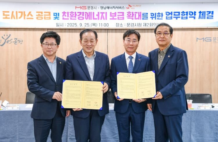 ㈜한국탑뉴스 차복원 기자 | 문경시는 지난 25일 영남에너지서비스(주)와 도시가스 공급 및 친환경 에너지 보급 확대를 위한 업무협약(MOU)을 체결했으며, 문경시의 친환경 에너지 활성화를 위한 협력도 함께 진행할 예정이다.