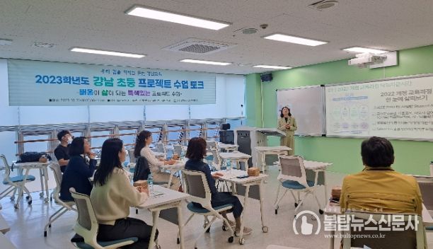 강남교육지원청은 31일 울산교육연구정보원 울산교원연구지원센터에서 강남지역 초등학교 희망 교사 42명을 대상으로 ‘특색있는 프로젝트 수업 이야기’를 진행했다.